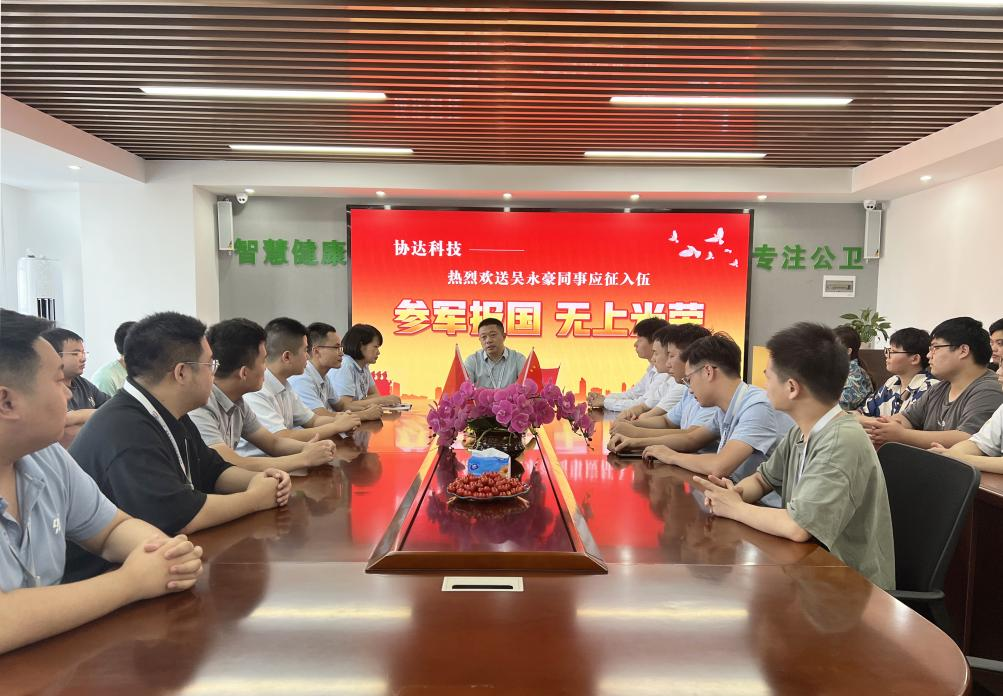2022年8月17日,協(xié)達(dá)科技在公司1號(hào)會(huì)議室舉行員工入伍歡送會(huì),公司全體在昌員工齊聚一堂歡送吳永豪同事光榮入伍。